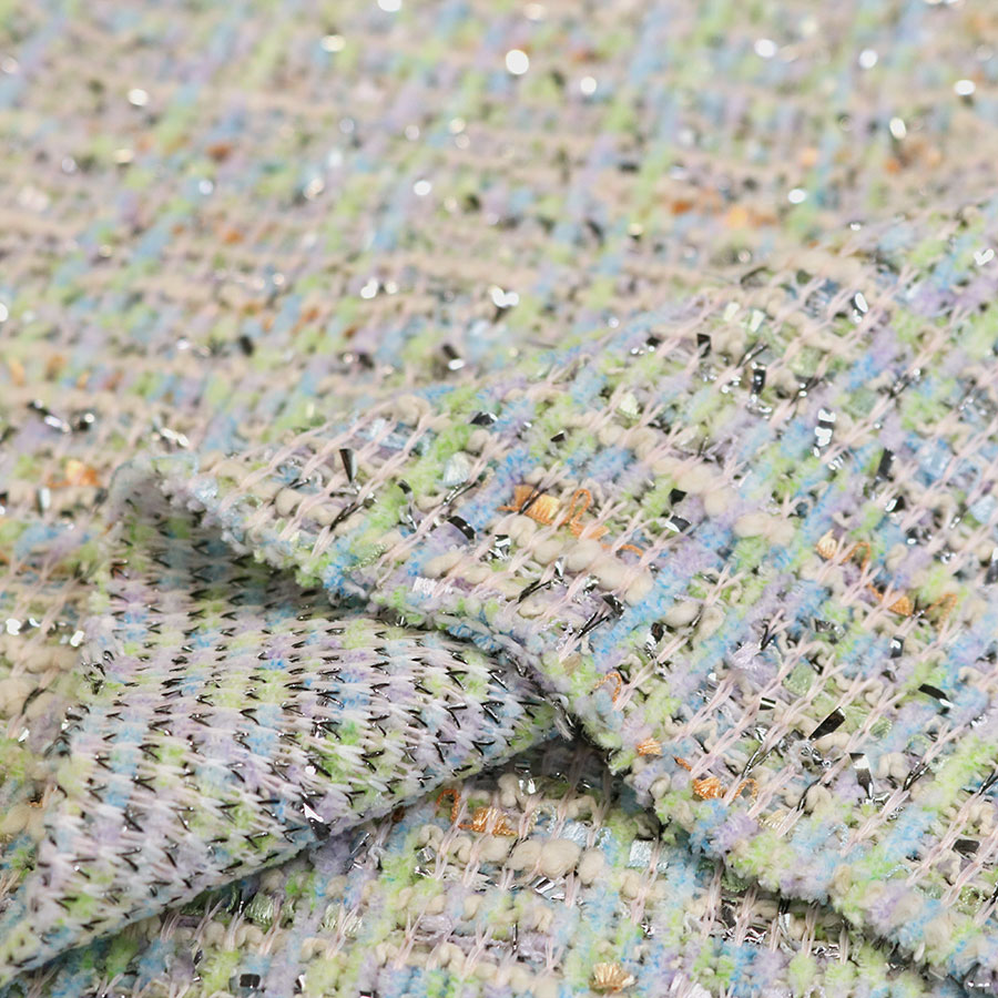 Simer Textile is an exporting factory and manufacturing supplier of luxury chanel style plaid lurex yarn dyed knit brushed hacci fabric for coat sweater dress in Shaoxing China.
