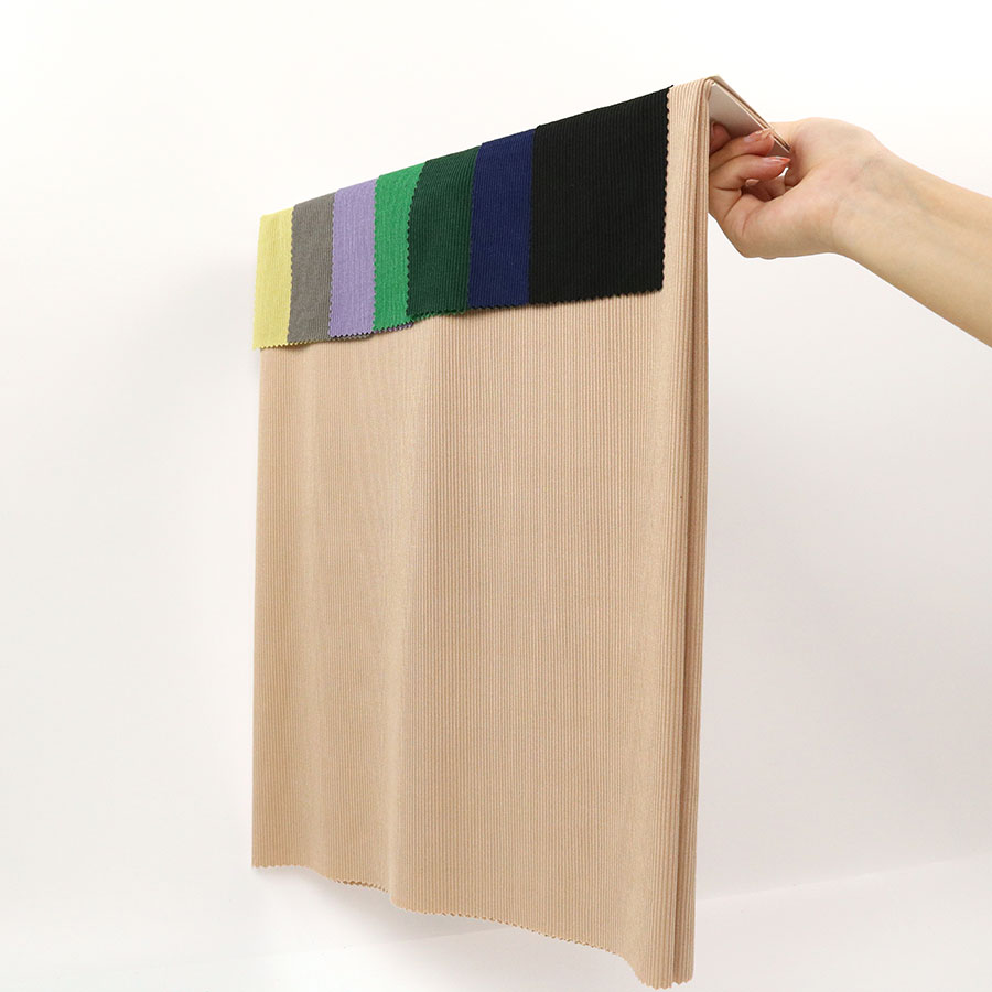 Gold cotton handfeel 2X2 rib knitting fabric 93% polyester 7% spandex for women garment from China Exporting Wholesaler.