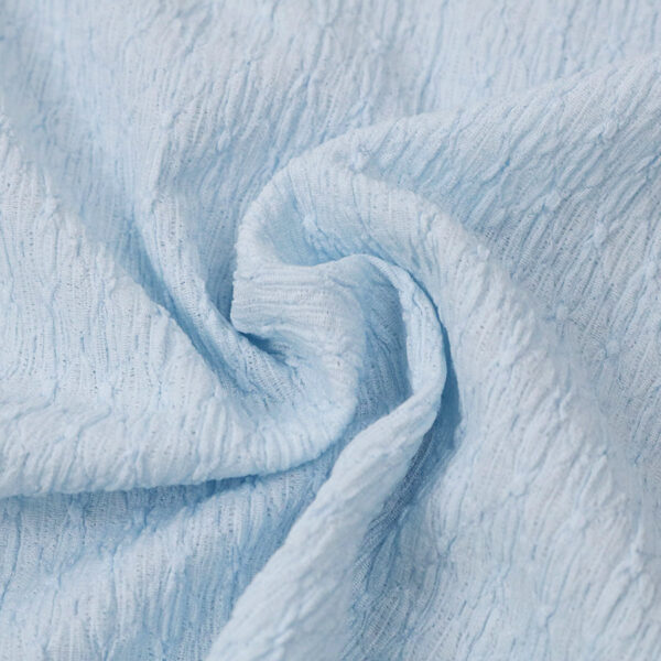 Simer Textile is an exporting factory and manufacturing supplier of soft light blue spandex poly heavy crepe fabric for dress shirts skirts in Shaoxing China.