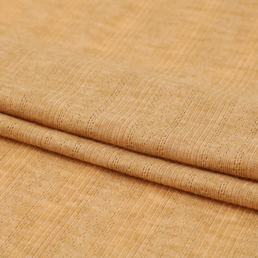 Simer Textile is a professional supplier and manufacturer of gold cream linen feel cotton tr rib knitted fabric for dress in Shaoxing China.
